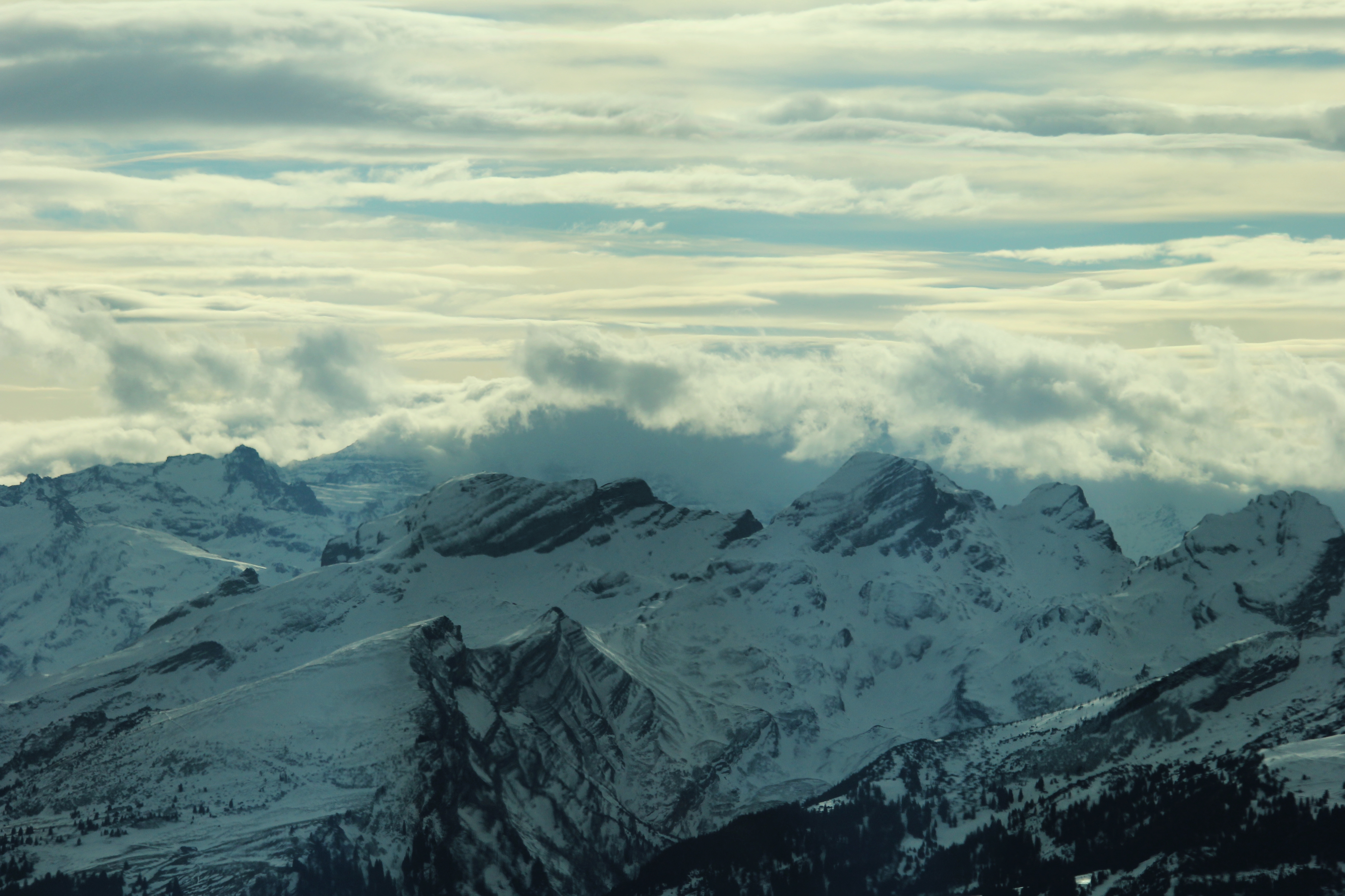 Der 4. Adventssonntag habe ich in der Höhe verbracht. Es muss nicht immer klar blauer Himmel sein um eine bezaubernde Aussicht zu erleben. Eine wunderbare Natur, glitzernder Schnee und auf gleicher Augenhöhe mit den herausragenden gewaltigen Bergen. Das alles und noch mehr bietet der Hohe Kasten im Appenzellerland. Von der Talstation Brülisau gelangt man mit der Seilbahn auf die Bergspitze, wo das 360 Grad Drehrestaurant im Mittelpunkt steht. Grosszügiges und leckeres Essen (selbst gekostet) haben meinem Magen eine wahre Freude bereitet. Im Tal lag teilweise Nebel, in den Bergen eine Mischung aus Wolken und Sonne. Ein starker Föhn blies. Ich habe mich in meine warme Jacke gekuschelt. Beim Fotografieren musste ich hin und wieder meine Hände in der Jacke verstecken, da mir meine Fingerbeeren fast erfroren sind. Im Innern des Restaurant konnte ich mich aufwärmen. Die Zeit ging viel zu schnell aber die Landschaft auf dem Hohen Kasten habe ich nicht nur mit meinem Fotoapparat, sondern auch mit meinen Augen und Gedanken festgehalten. Übrigens, für Sportbegeisterte gibt es im Sommer die Möglichkeit, zu Fuss bis auf den Berg zu wandern.
