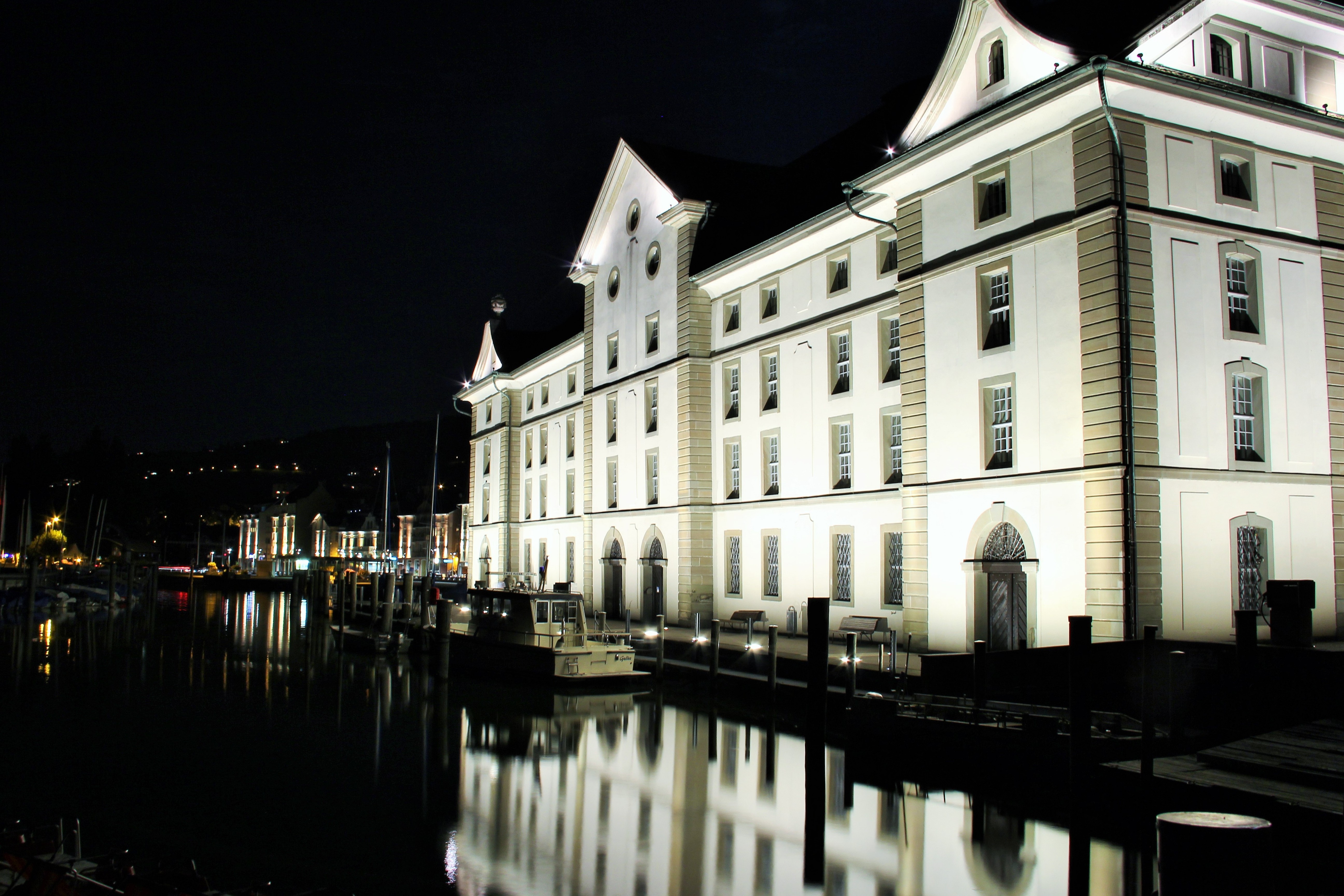 Gegen Mitternacht erzielte ich die Fotos der Wahrzeichen von Rorschach: Die Badhütte ist seit 1924 eine Badeanstalt und bis heute eine Sehenswürdigkeit.