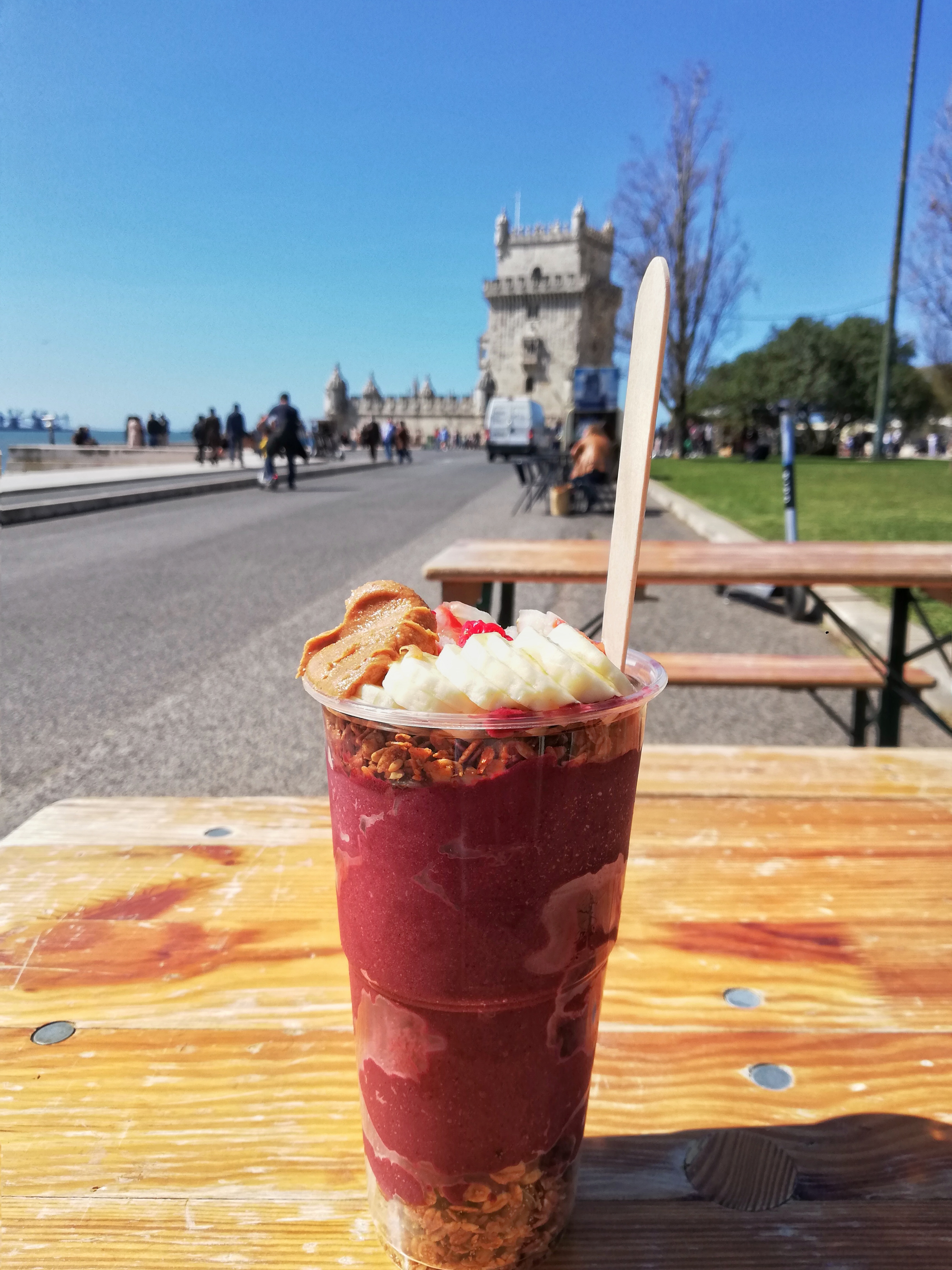 Gestärkt nach einer Acai Bowl eines Foodtrucks gehe ich am Flussufer entlang zu einem zweiten Denkmal in einer prächtigen Schiffsform, dem Padrão dos Descrobimentos. Ich hebe meinen Kopf, meine Hand lege ich über meine Augen, um sie vor der grellen Sonne zu schützen. 52 Meter hoch und 32 legendäre Entdecker wie der portugiesische Seefahrer Vasco de Gama sind das Highlight dieses Bauwerks.