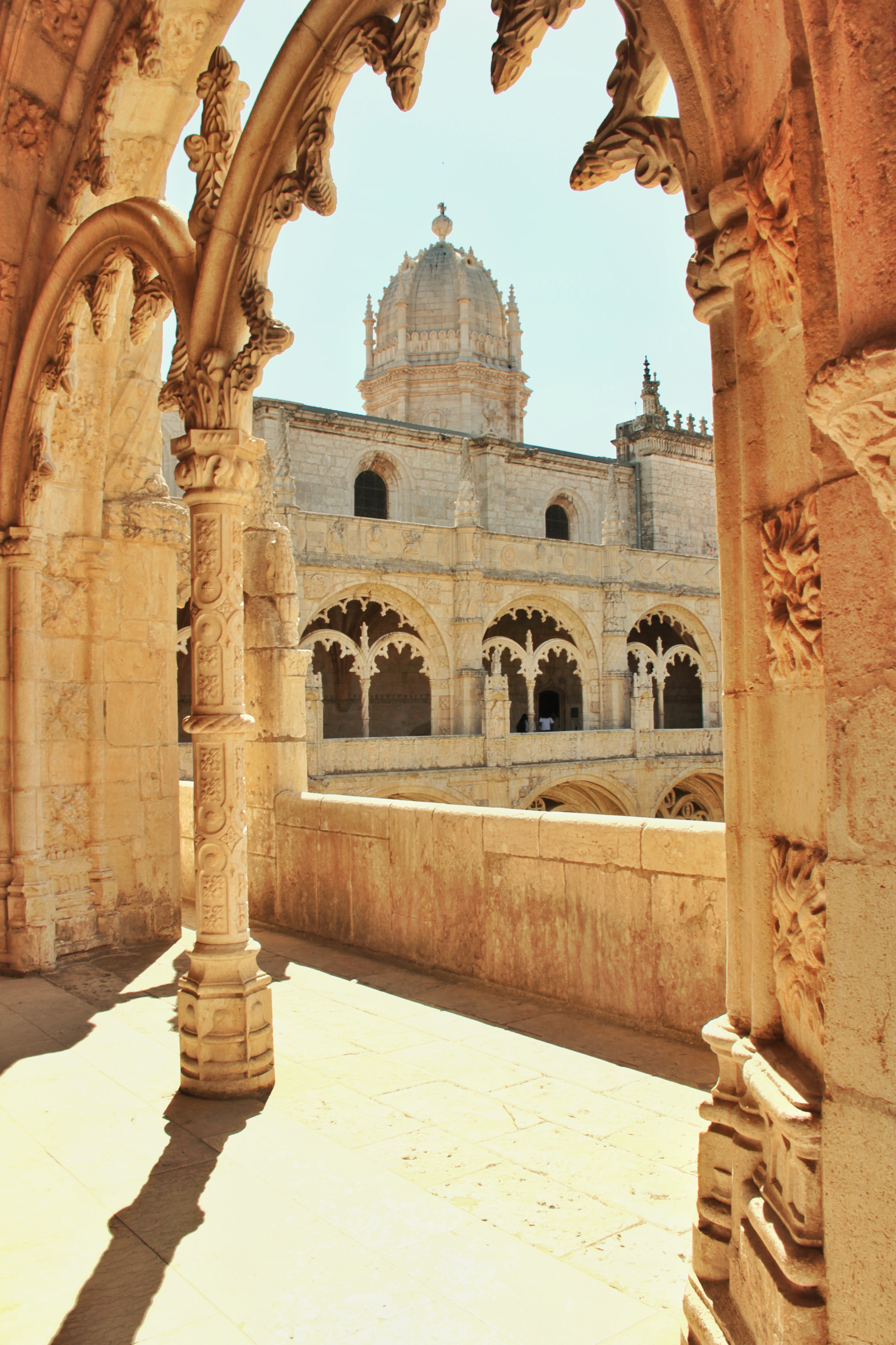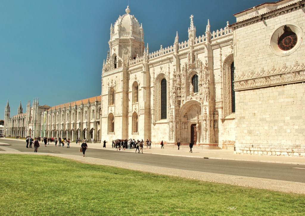 Ich beschliesse, die Zeit zu nutzen und zur dritten Sehenswürdigkeit Richtung Beléms Zentrum zu gehen. Hinter einem grosszügigen Park mit Springbrunnen und gepflegtem Rasen ragt es hervor. Ein wahres Meisterwerk manuelinischer Baukunst, ein erfundener portugiesischer Stil, erbaut vom König Manuel I., macht sich vor mir breit. Meine Augen können gar nicht alles aufnehmen, so viele detailreiche, prunkvolle Ornamente, Figuren aus feinster Handarbeit zieren das Mosterio do Jerónimos.