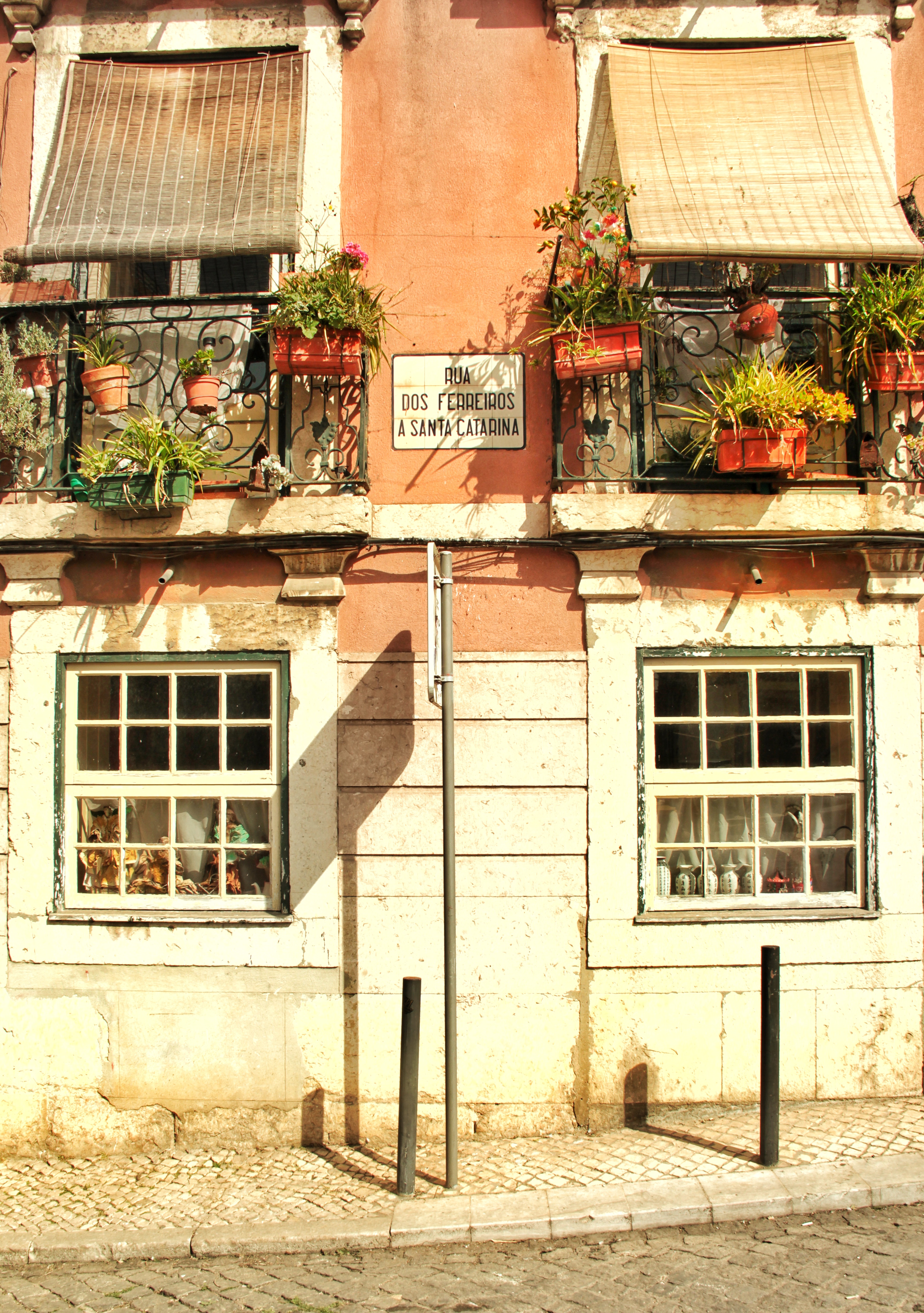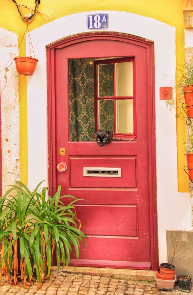 Nun begebe ich mich auf die andere Seite der Stadt zum Elevador de Santa Justa, aber wie? Steil die Strassen nach oben. Was für ein Glück ich habe! Ich greife zu meiner Kamera und knipse auf eine bordeauxrote Tür, in deren Fensterrahmen streckt eine Katze ihren Kopf hinaus. Solche Momente sind einzigartig und zeigen mir, dass auch die Tiere hier die unbeschwerte portugiesische Lebensart geniessen.